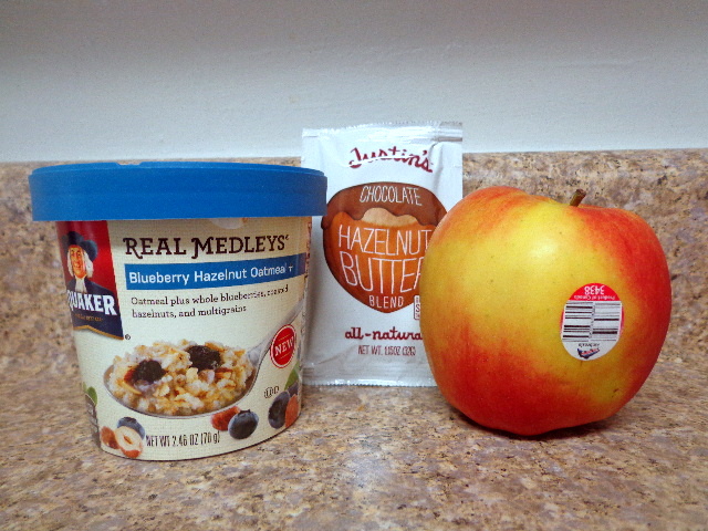 Blueberry hazelnut oatmeal from Quaker topped Justin’s chocolate hazelnut butter to continue the theme. Plus an Ambrosia apple that was sweet and juicy.