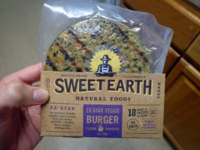 The Za’atar veggie burgers were part of my box from Sweet Earth Foods.