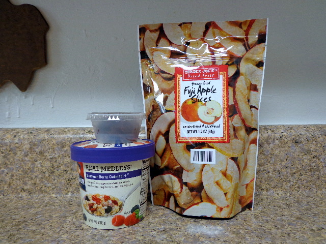 Oatmeal (with Cacao Bliss) and freeze-dried apples.