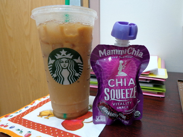 Coffee (I’m still doing the 1/2&1/2!) and a Blackberry Bliss Mama Chia.