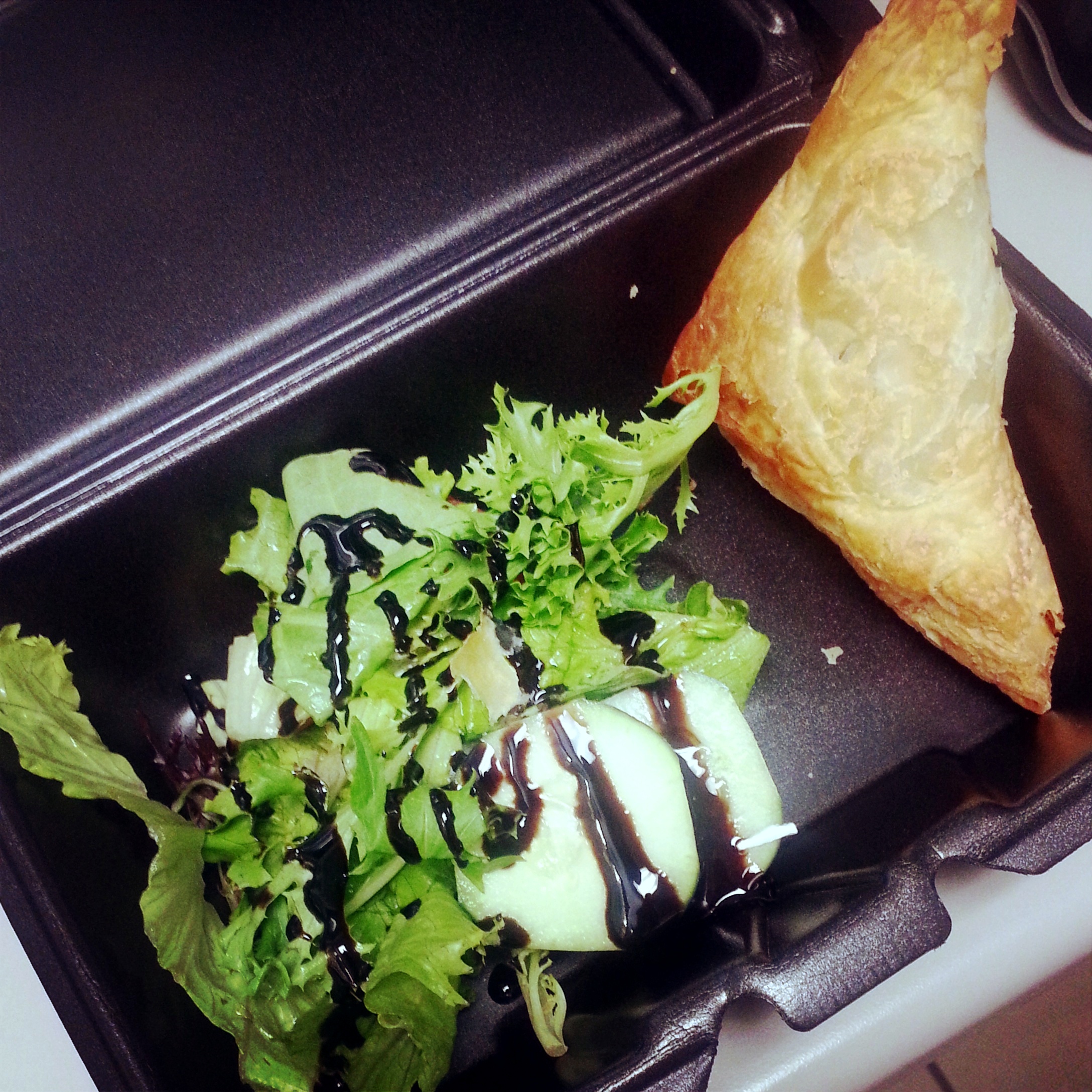 Salad with a great, thick balsamic glaze, homemade spinach and feta pastries, and chocolate zucchini cake for dessert. Everything was delicious; I tried to bring leftovers home for Adam and I ended up eating them all on the train!