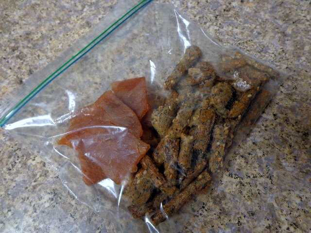 TJ’s turkey jerky with Mary’s Gone Crackers Everything Pretzels.