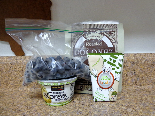 Fairway soursop yogurt with blueberries and roasted coconut and a Jax soursop coconut water.