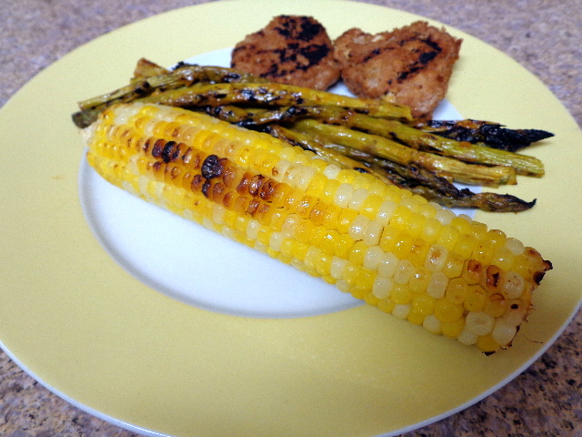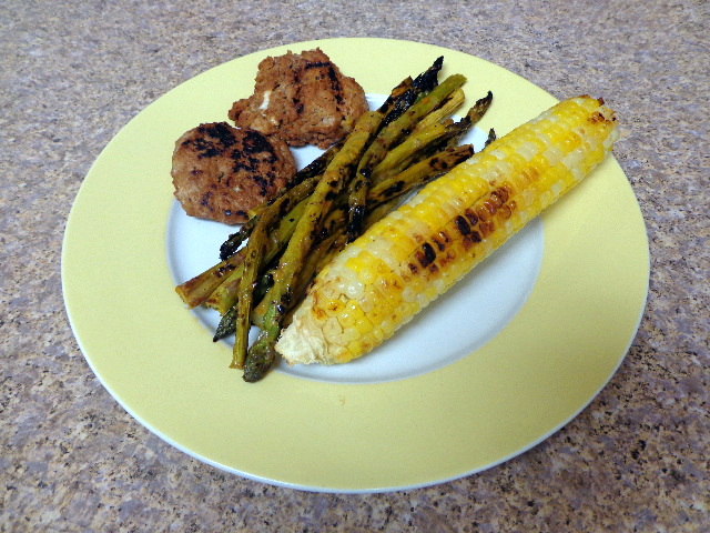 Dinner came from the grill. Our unseasonably warm weather has the upside that it encourages outdoor cooking.