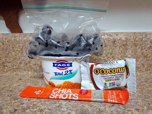 With blueberries and a Hemp & Chia O’Coconut snack on the side.