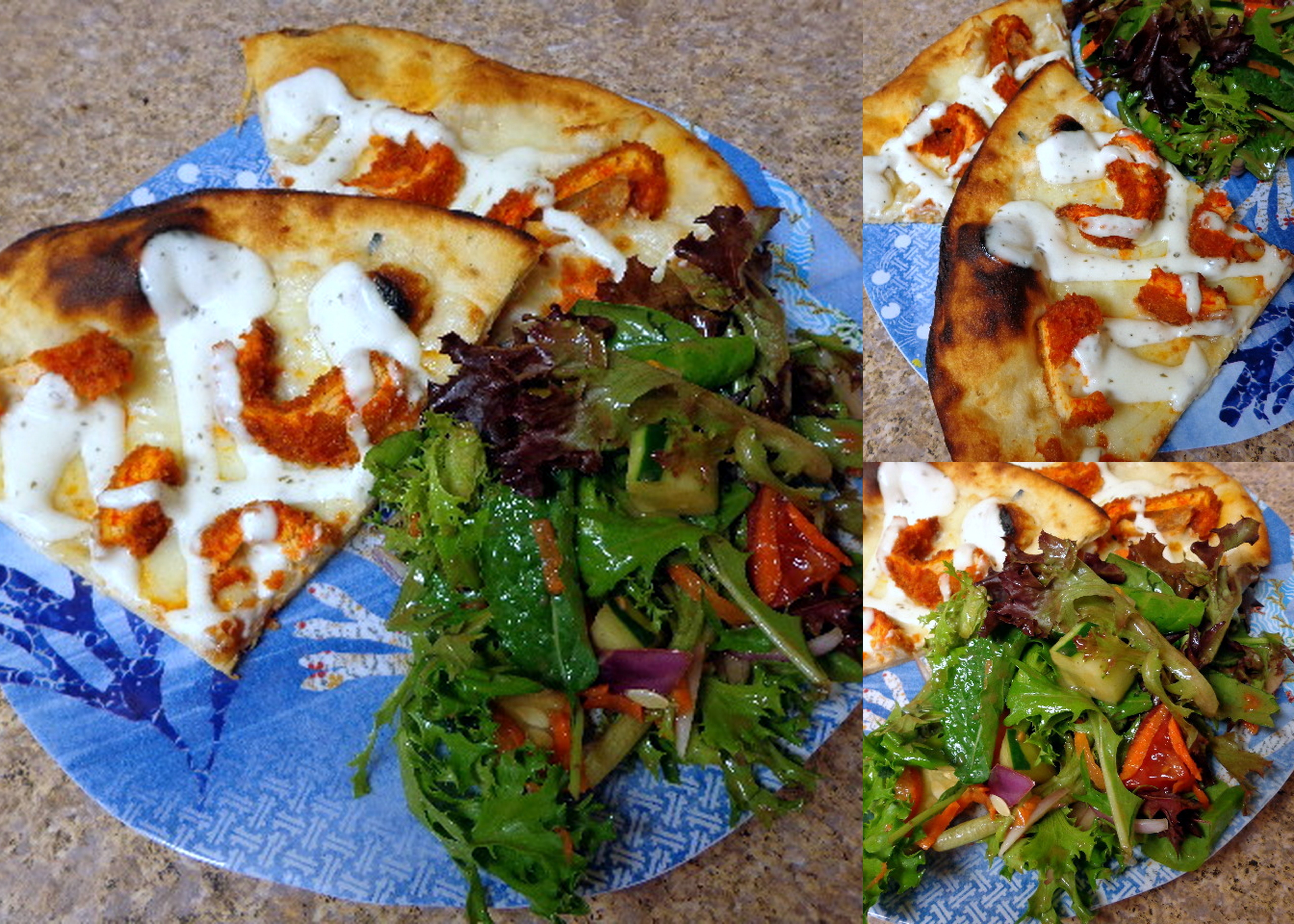 Then later, pizza pizza – buffalo chicken – and a side salad.