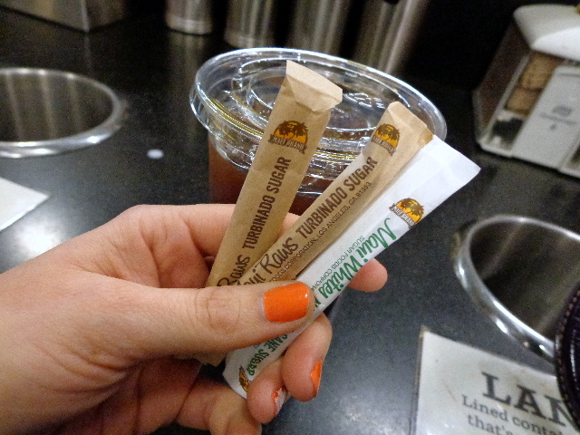 I tried the sugars (which come in convenient 10 calorie to-go packages) in iced coffee,