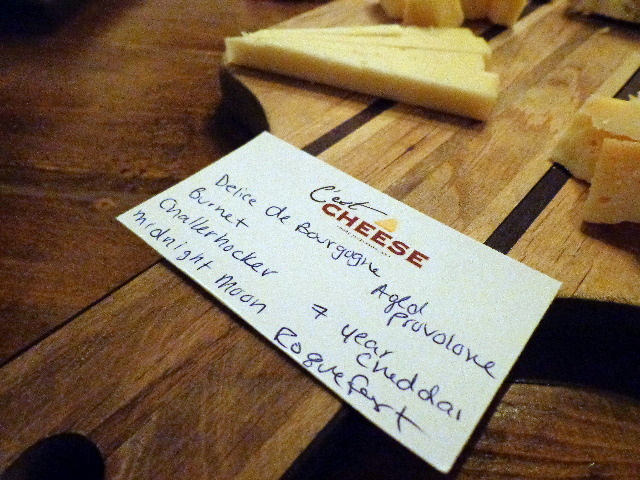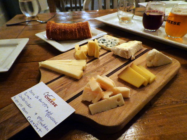When I was done with my work on Saturday, Adam and I drove up to Port Jeff for a dinner date at C’est Cheese. We shared a beer sampler.