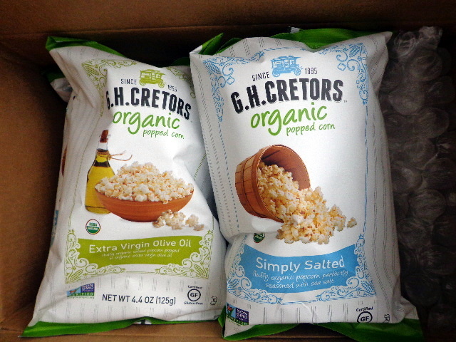 GH Cretors elevated our snacking game by sending me a big box of the two flavors from their new organic line – Simply Salted and Extra Virgin Olive Oil.