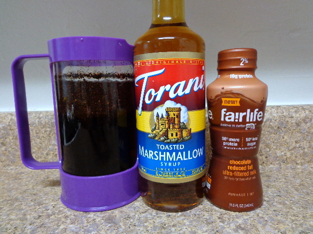 I had a ridiculously amazing coffee combo this week…  Cold-brew with chocolate milk and toasted marshmallow coffee syrup!