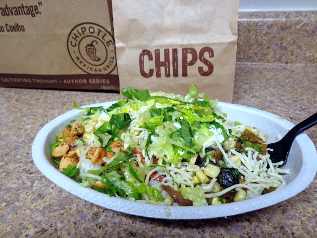 Chipotle night.  I ate a giant rice bowl with chicken, veggies, and pretty much all of the toppings.