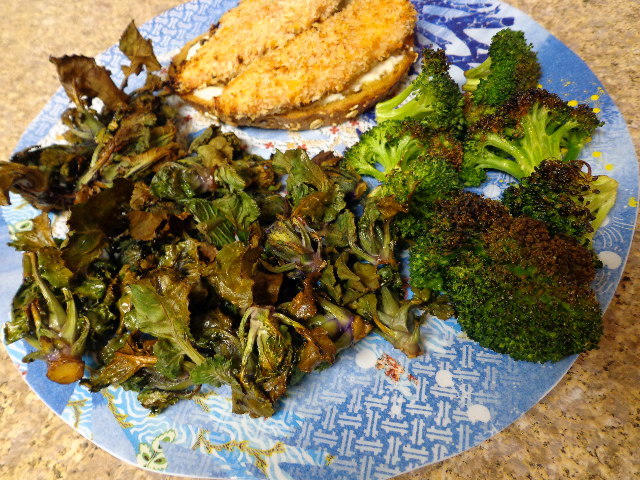 Roasted broccoli and kalettes (aka kale-Brussels sprout hybrids).