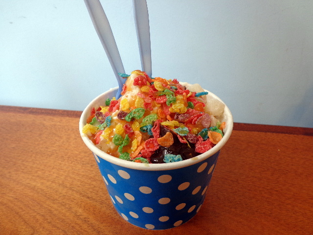 We shared a sweet cream with salted caramel, fruity pebbles, grass jelly, and mochi. Snowdays is Adam’s favorite iced dessert option and mochi are my favorite iced dessert topping.