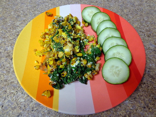 Scrambled with fresh arugula and TJ’s fire roasted corn. Instead of toast, I had ice cream.