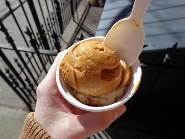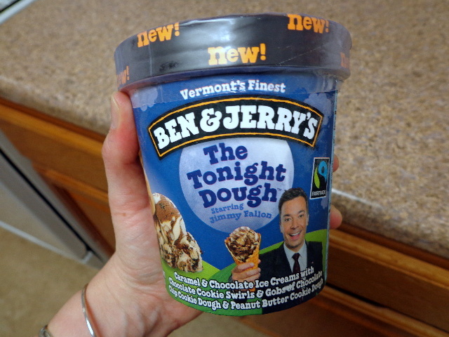 Jimmy Fallon can laugh at his own jokes, I don’t care, this is the best Ben & Jerry’s of all time: Caramel & Chocolate Ice Creams with Chocolate Cookie Swirls & Gobs of Chocolate Chip Cookie Dough & Peanut Butter Cookie Dough. Funny fact – I thought I hated iced cream up until a year or two ago.