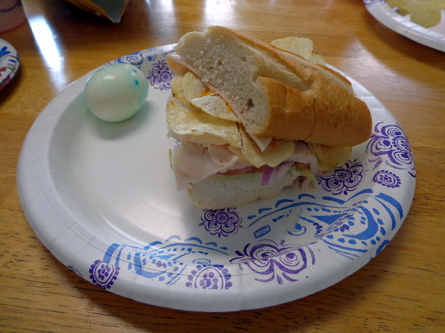 Subs with the in-laws for Easter. With chips and hard-boiled Easter eggs.