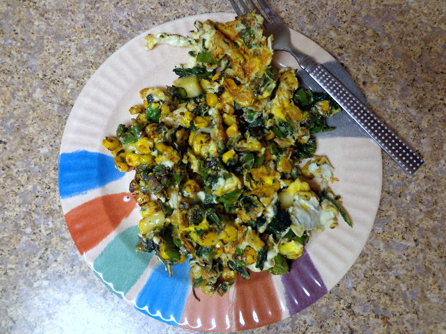 Coming up somewhere just behind coffee, diet coke, dulce de leche, and popcorn, corn cooked in scrambled eggs is one of my favorite meals.