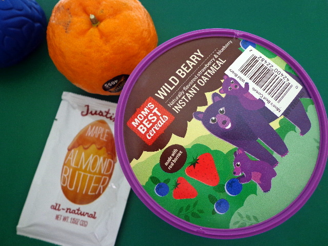 Wild Beary flavor with maple almond butter on top and a Gold Nugget tangerine on the side.