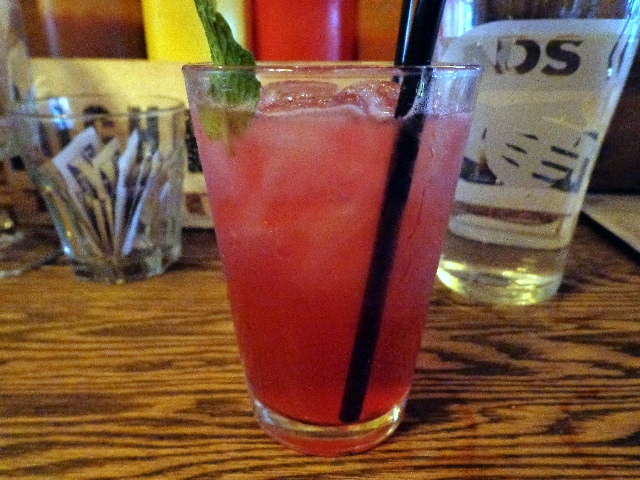 House-infused hibiscus vodka, mint, lime, and soda. I am obsessed with mint lately.