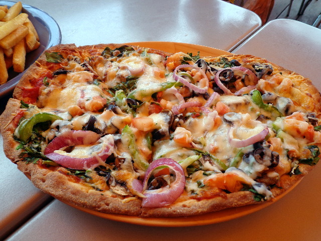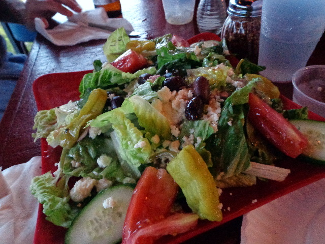 The food was meh – we split a Cajun mahi mahi sandwich and a veggie pizza that Adam loved –  but the view was nice.