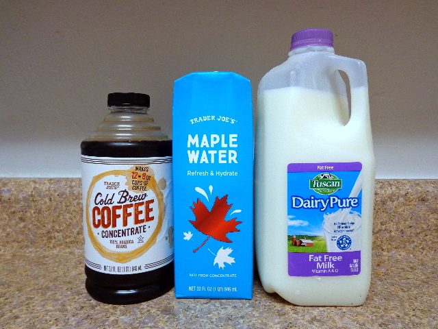 (3) Cold brew.  Coffee concentrate cut with skim milk and maple water.