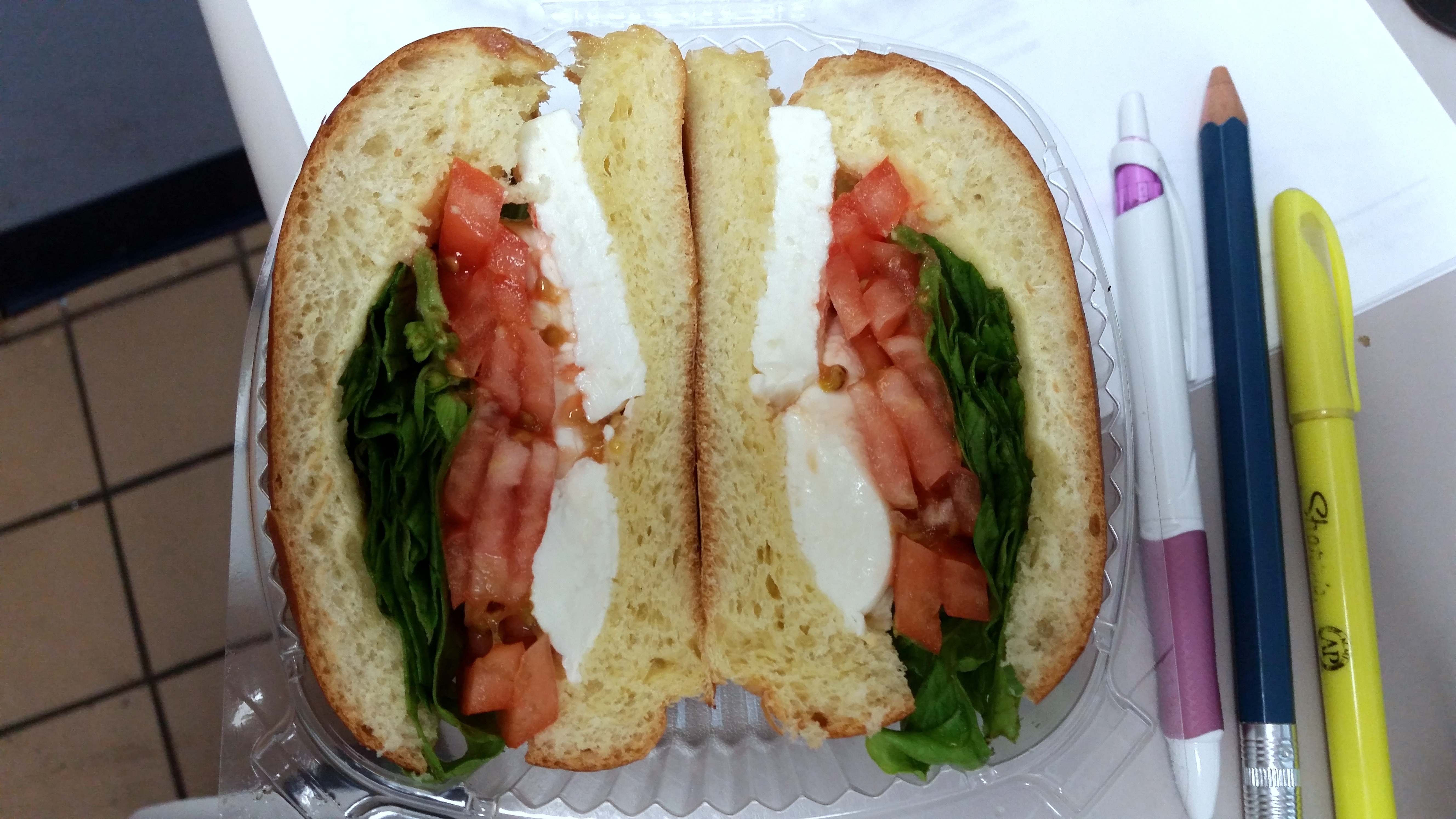 I was all about the sandwiches this week. Caprese sandwich from the cafeteria. Tomato, basil, mozzarella, and spinach.