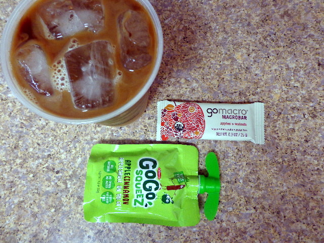 Coffee, cinnamon applesauce, and GoMacro apples + walnuts (morning harvest). They should have just called this flavor “apple pie” because that’s what it tasted like.