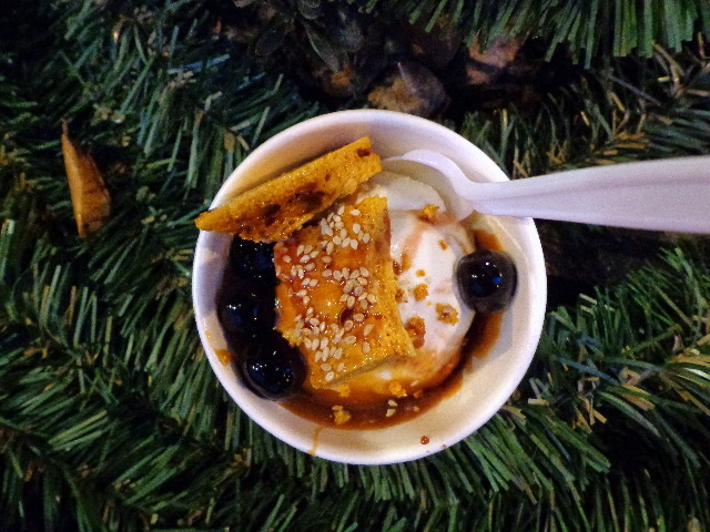 We cooled down at Snowdays. Black sesame shaved ice with sweetened condense milk, mochi, and Fruity Pebbles.