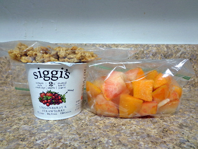 On Friday I did get back to my yogurt bowl roots. 2% Lingonberry & Strawberry Siggi’s with chopped aprium and pluot and KIND peanut butter granola.