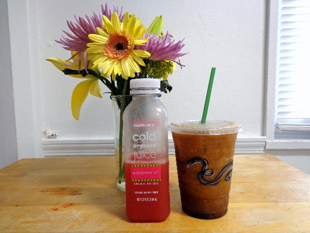 This week’s coffee (a mix of Community Coffee and Brooklyn Roasting Co) was iced with milk (a mix of vanilla almond milk and skim).  Sweetened with honey – meh.