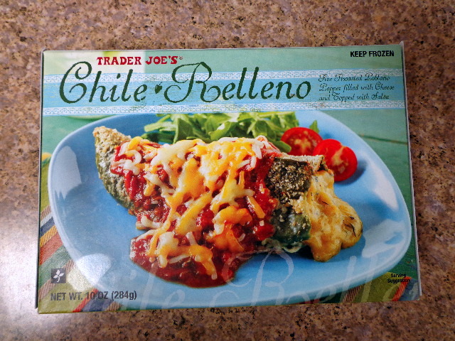 We were supposed to have this meal two nights in a row but we snacked on the 1st round of patties while we assembled the salads (and the dog ate an entire patty that fell on the ground!) and there ended up only being enough leftovers for one.  Really I won out though because this chile rellano from TJ’s was darn good.