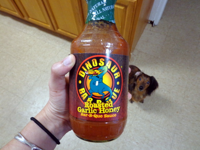 And my “salad” – which had no greens because we ran out of spinach – was tons of chopped cucumber and sweet red pepper topped with TJ’s insanely spicy Sriracha ranch, shredded cheddar, roasted pecans, and a huge pile of pulled chicken with roasted garlic and honey bbq sauce.