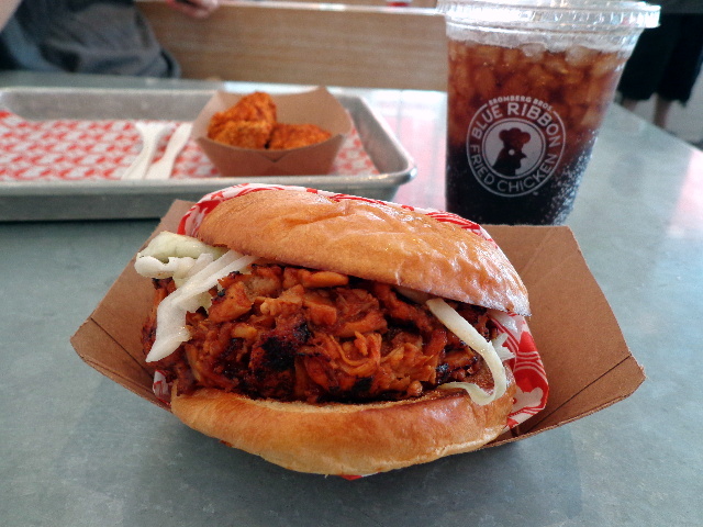 Sandwiches at Blue Ribbon. I got the pulled bbq chicken with cole slaw on top.