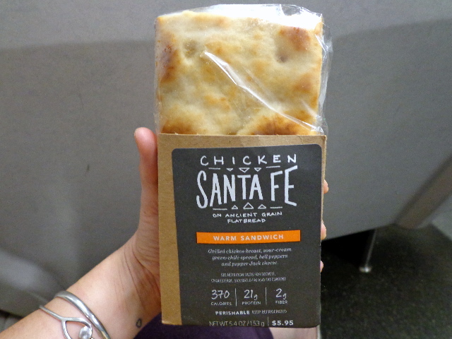Monday I ate a Starbucks chicken Santa Fe sandwich on the train.
