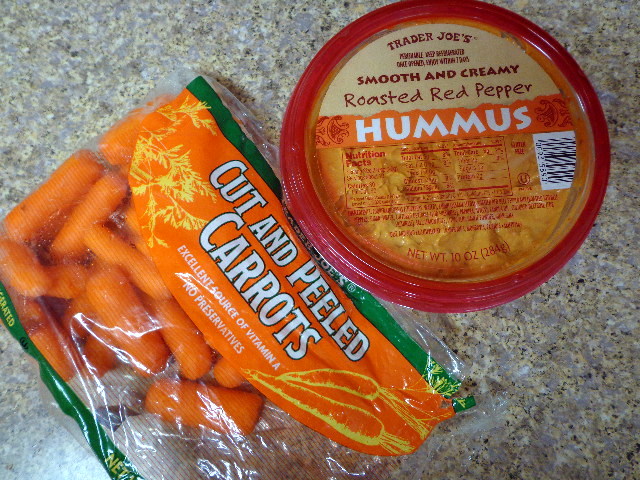 Tuesday I at least legitimately included some vegetables in my snack-based dinner. Carrots with hummus.