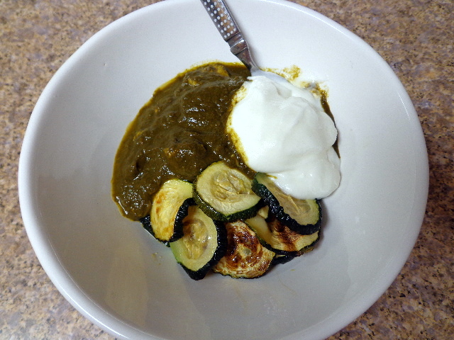 With a dollop of goat’s milk yogurt on top. And my final La Brea Bakery review* on the side – flatbread.