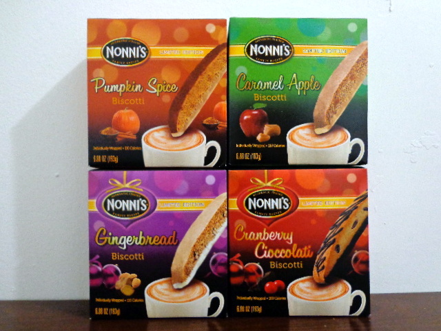 Nonni’s said I could share the love with you guys.  One lucky (USA-based) reader will receive a box with all four holiday flavors.  To enter to win – simply leave a comment on this post telling me which flavor you are most interested in.  Comments must be received by midnight on Tuesday, October 27th.