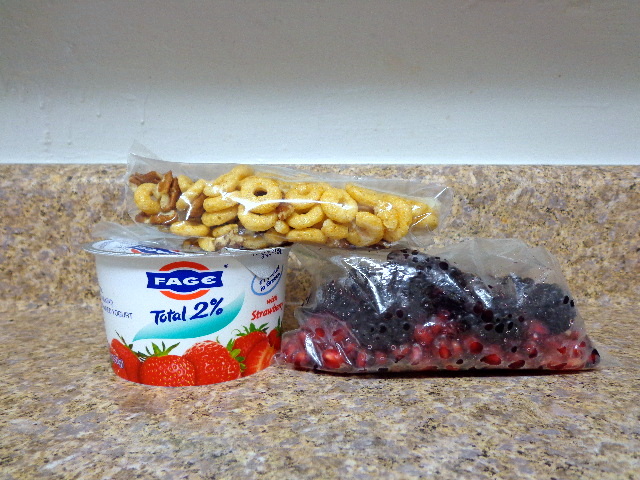 Strawberry Fage with pumpkin o’s, pecans, blackberries, and pomegranate.