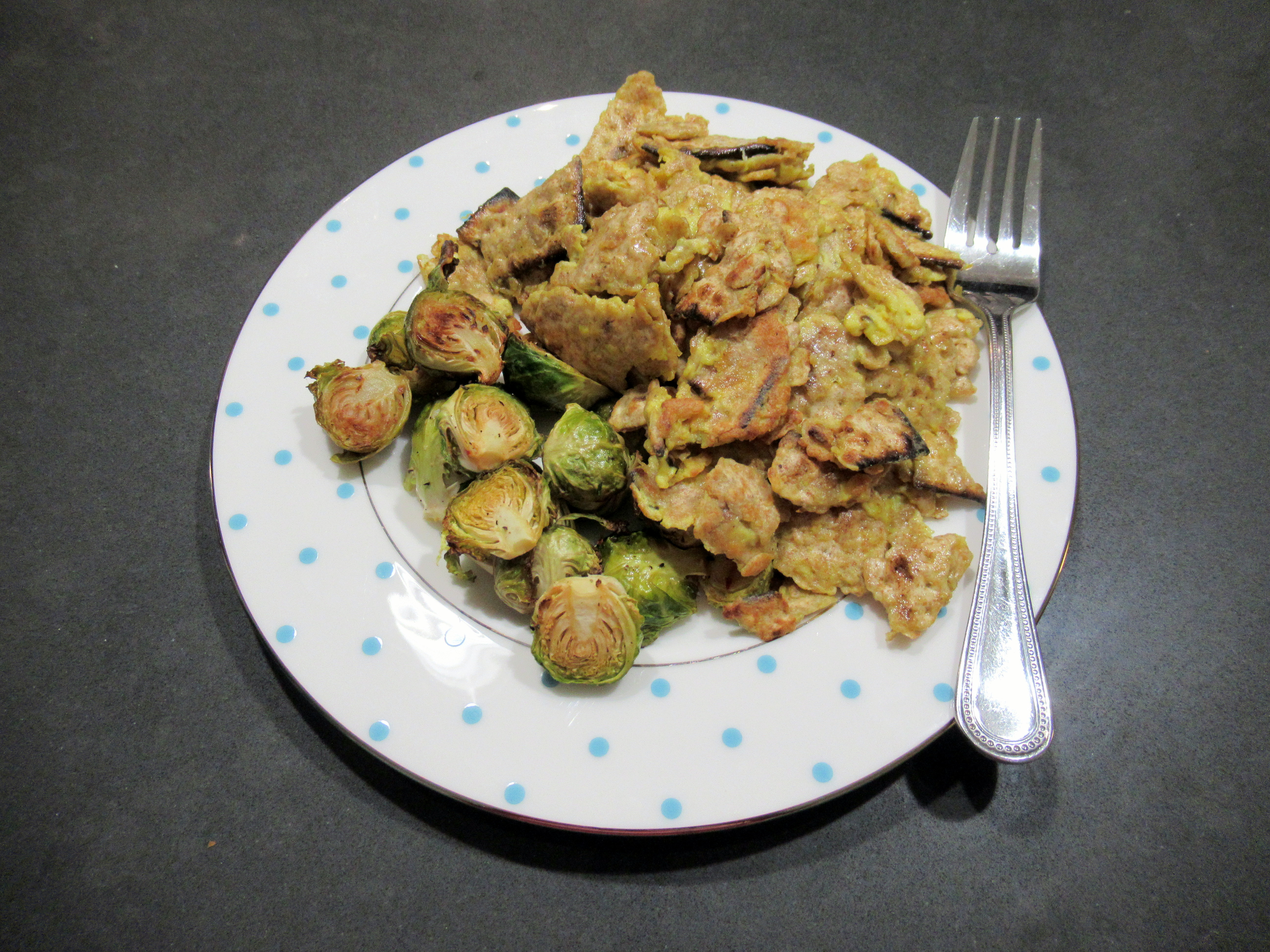 Whole-wheat matzoh brei with roasted brussel sprouts.