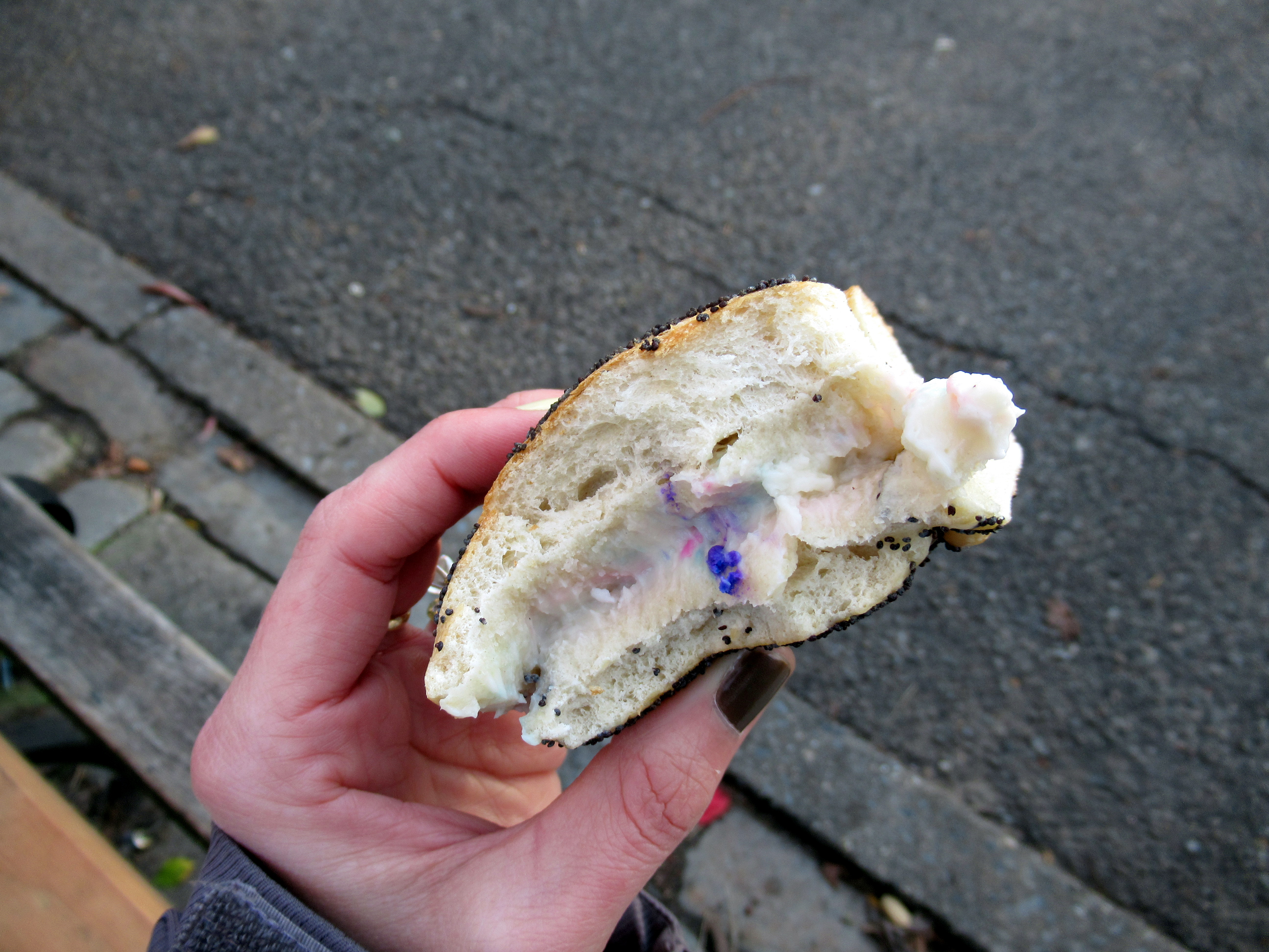 Thompson Square Bagels (my favorite in the city) poppy seed with birthday cake cream cheese.