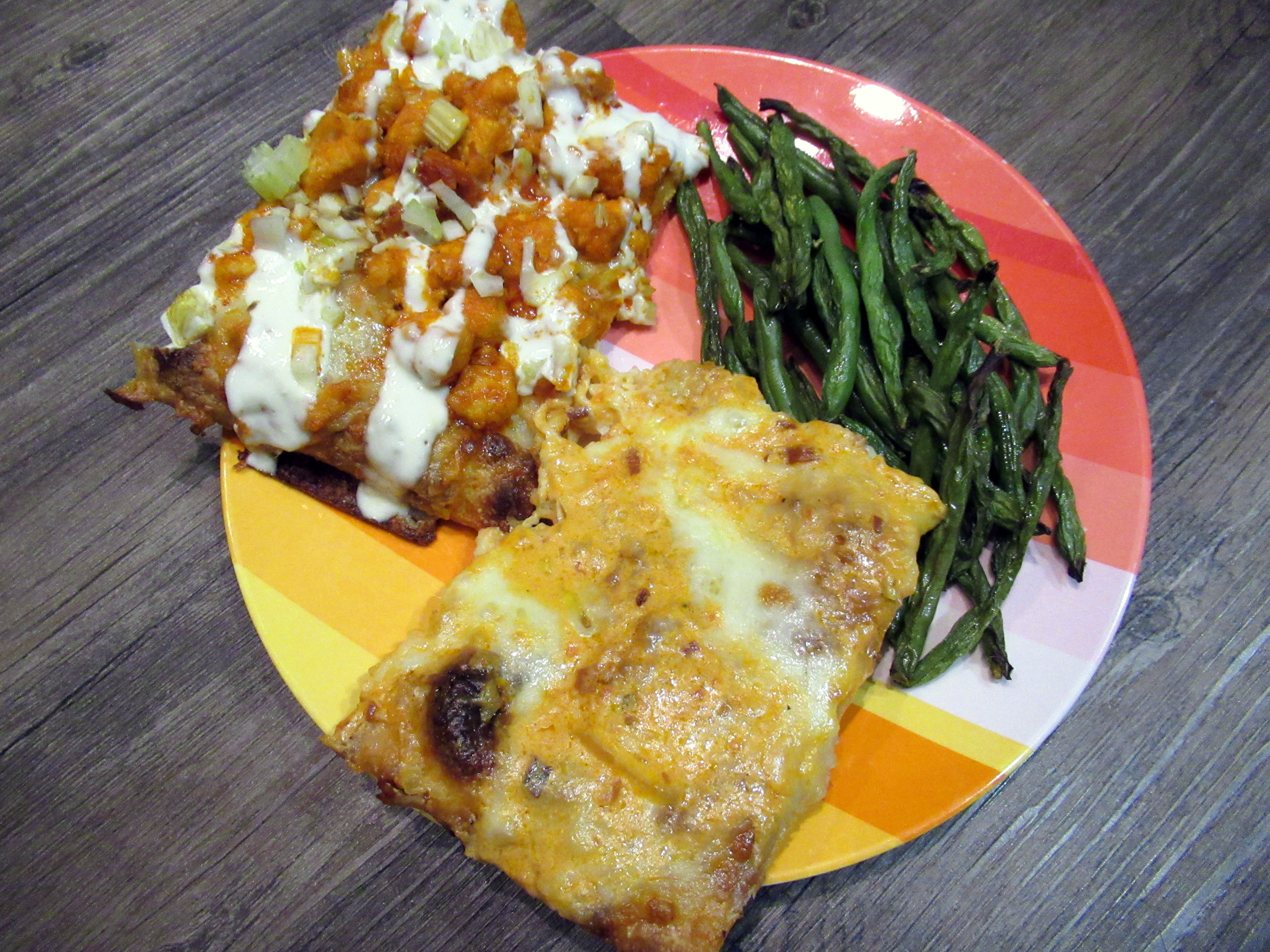 Pizza. Vodka and buffalo chicken. Plus roasted green beans.