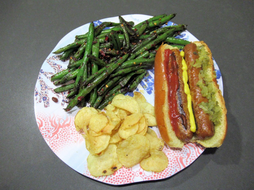 The best dinner: Vegan hot dogs with ketchup/yellow mustard/relish on a brioche bun + potato chips + wok stir-fried green beans with chili crisp. This whole meal was wonderful but the green beans were definitely the best vegetable I’ve ever made at home.