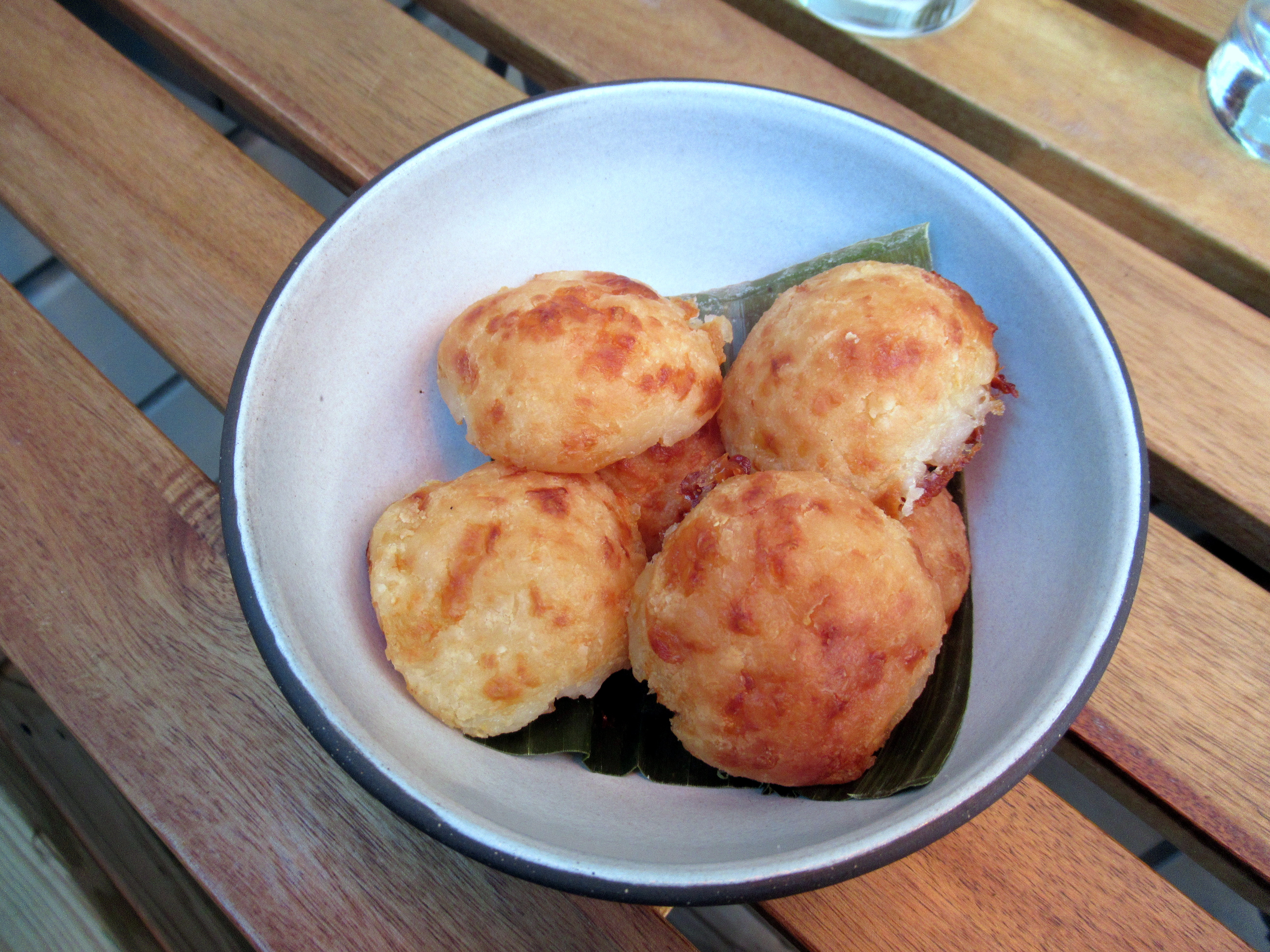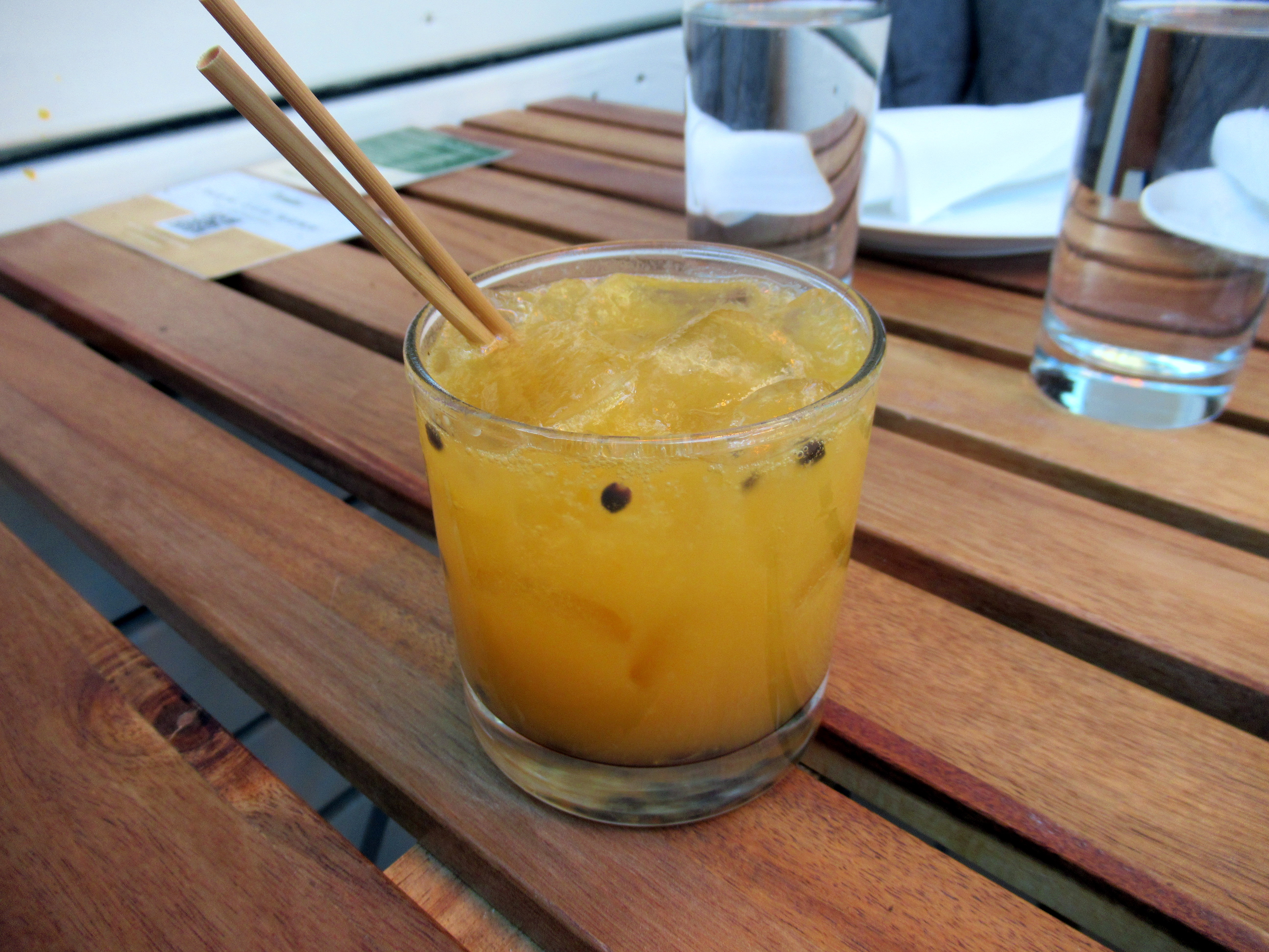 The best lunch: Brazilian food from Berimbau. We started with a passion fruit caipirinha and Brazilian cheese bread.