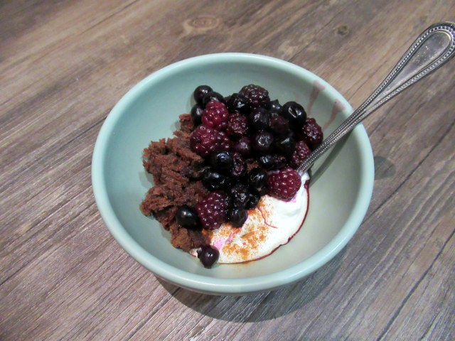 I obviously crumbled one into plain skyr with some berries and cinnamon.