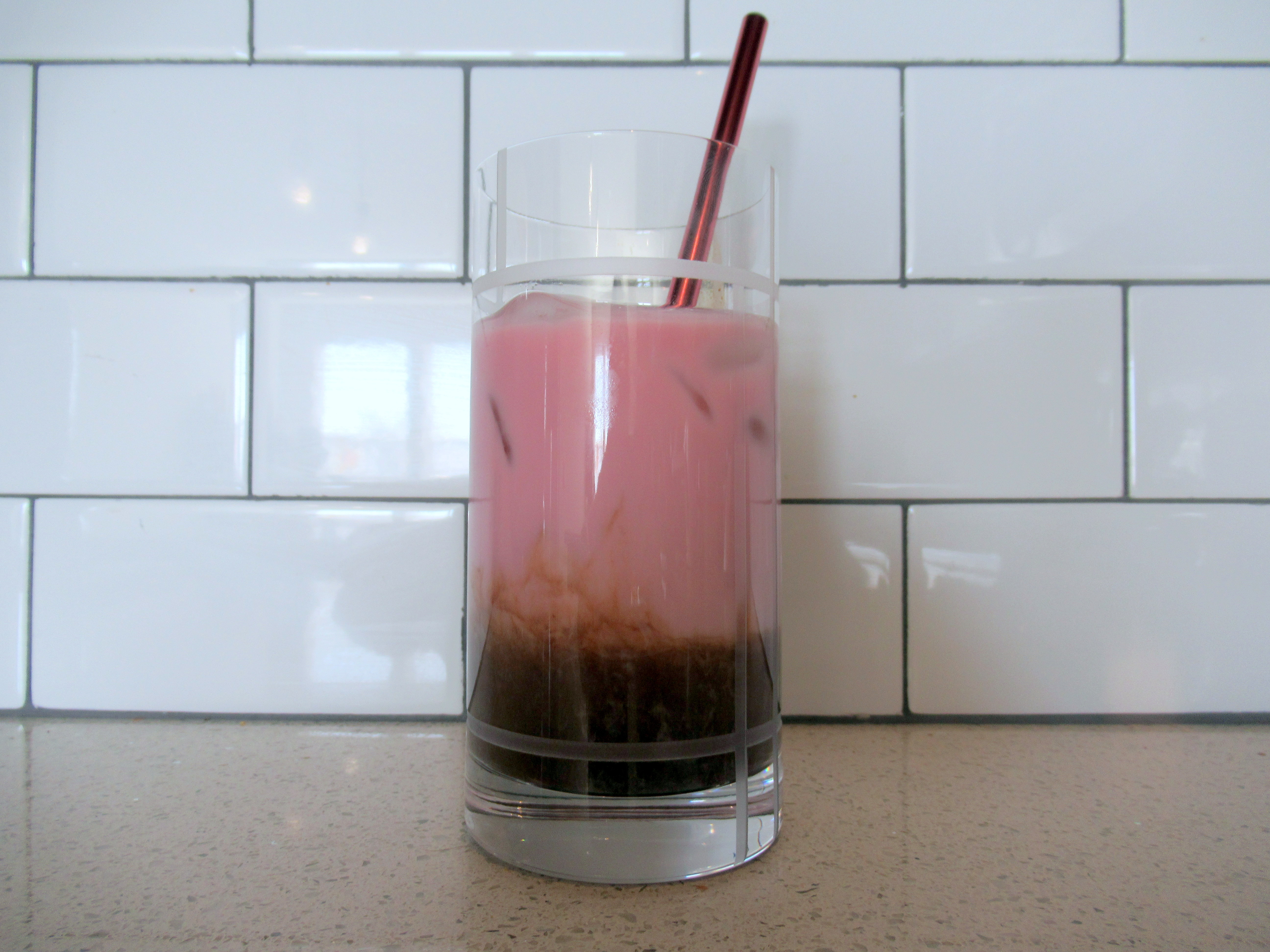 See also – vanilla milk and luxardo juice (plus a bit of red food coloring!) plus espresso blended with hot chocolate mix.