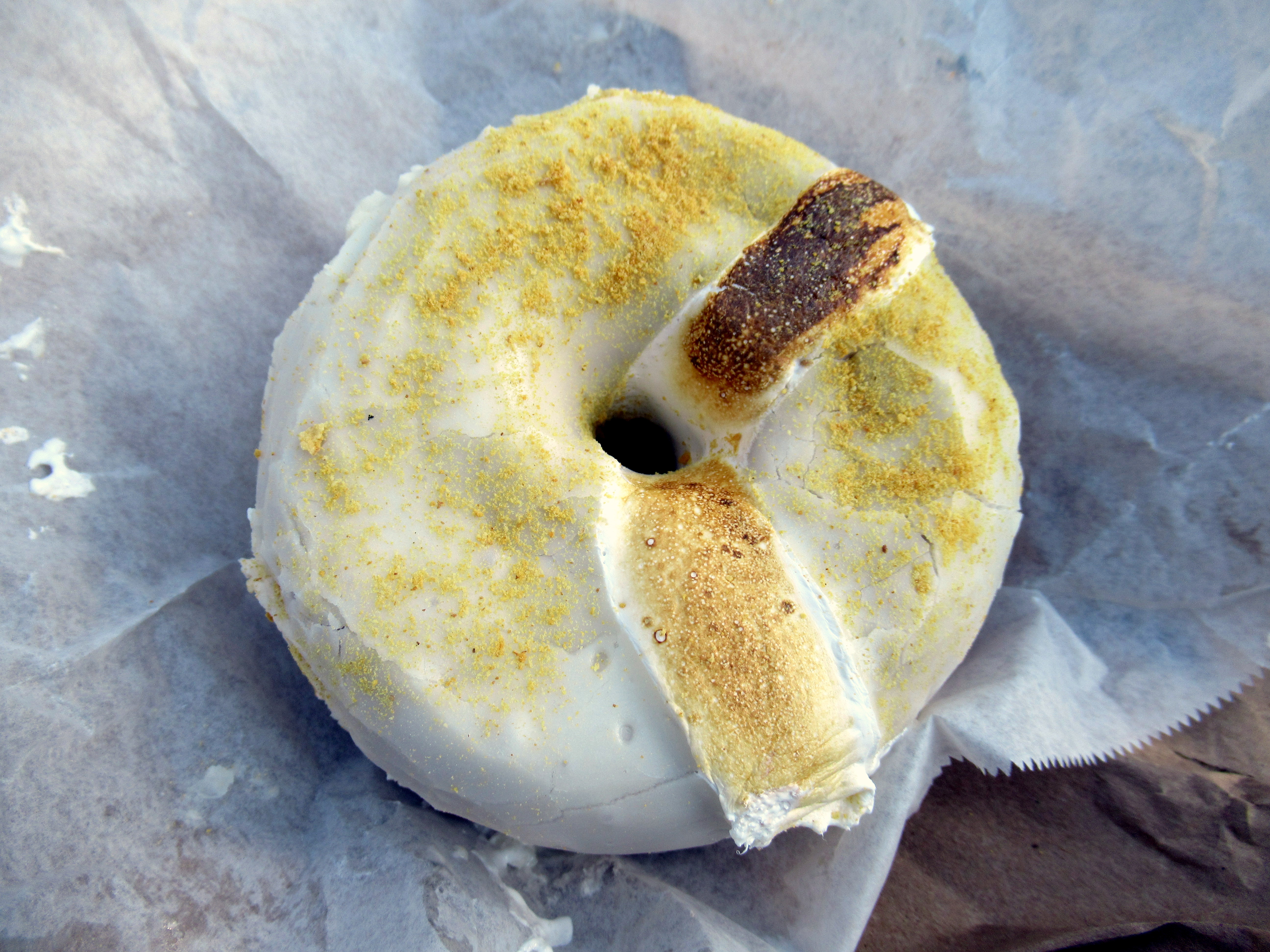 I was off on Wednesday (I work the weekend again) and I took myself into the city for Dough Doughnuts. This key lime pie doughnut – enrobed in toasted marshmallow!! – was 100% worth braving the cold.
