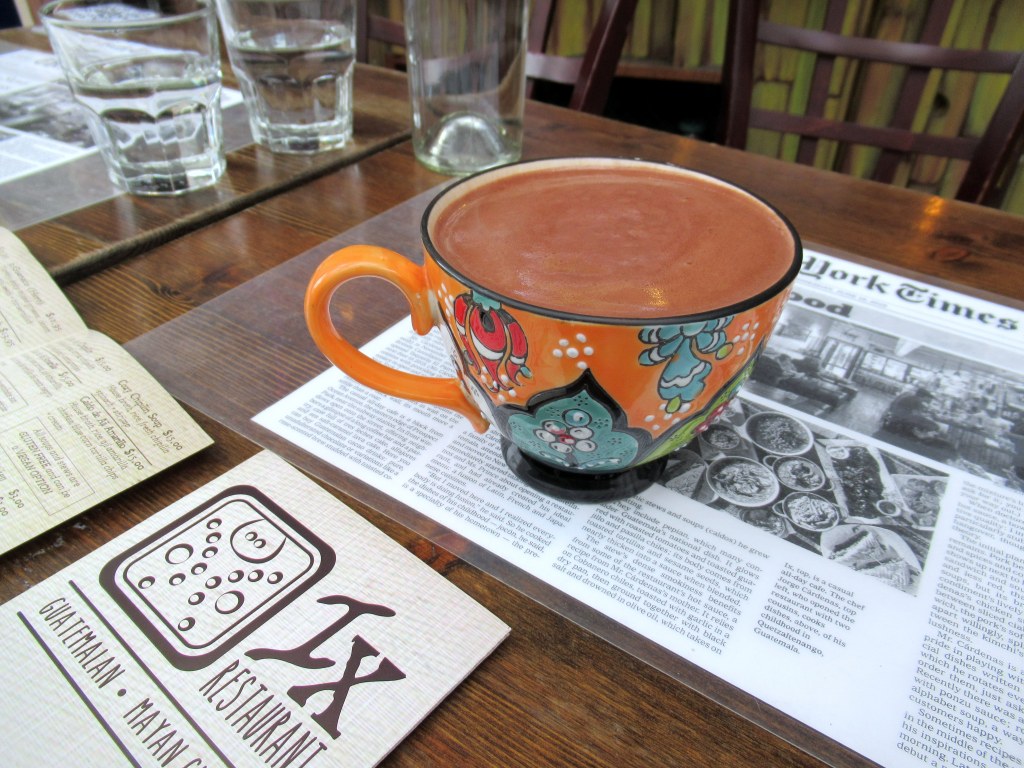 Meal 1 at Ix. Corn thickened Champurrado hot chocolate.