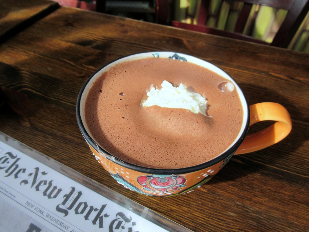 Meal 2 at Ix. Hot chocolate with a scoop of vanilla ice cream.
