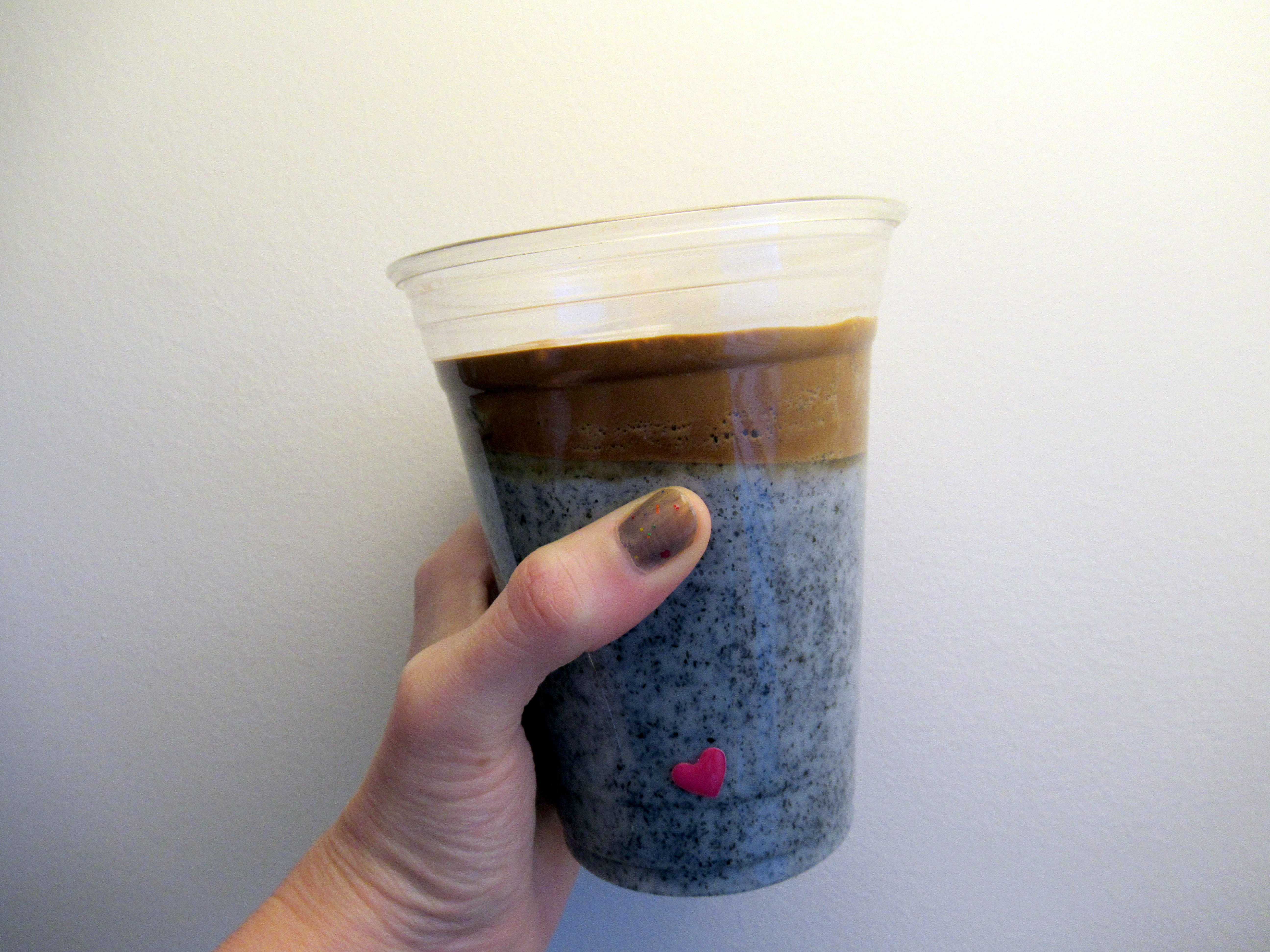 Dalgona iced coffee with black sesame vanilla bean milk.