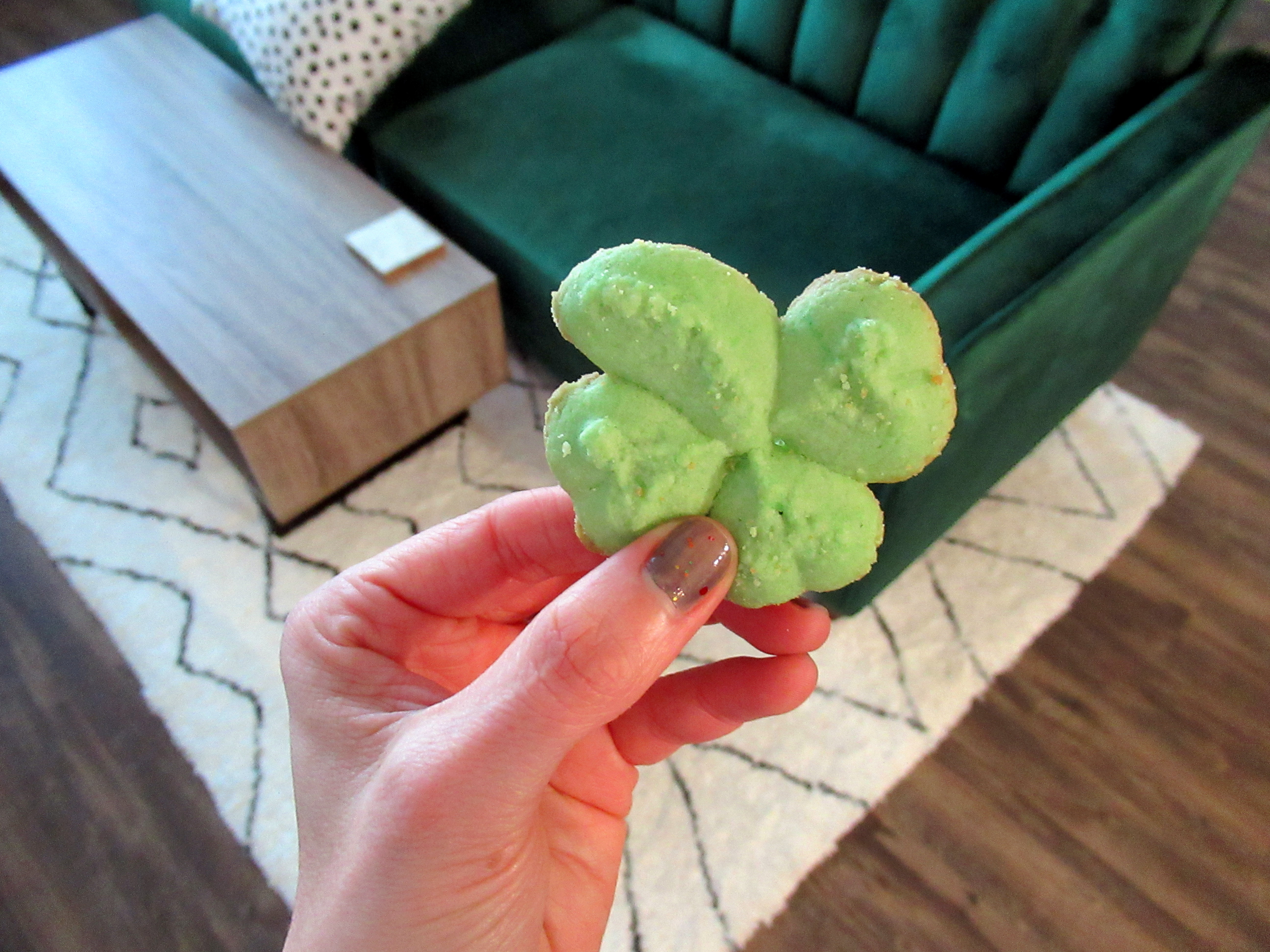 My parents sent us a box of St. Patrick’s Day goodies, including homemade clover sugar cookies.